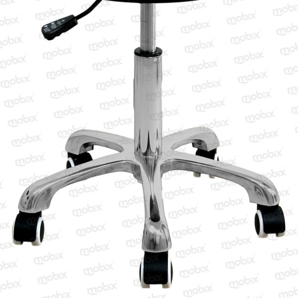 Piétement en aluminium robuste durable avec roues de haute qualité en polyamide pivotantes pour un déplacement facile.